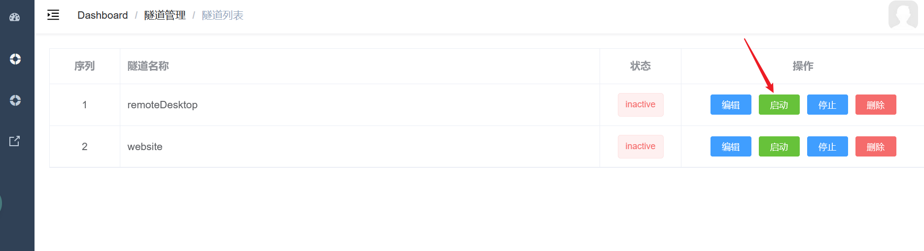 浏览器访问127.0.0.1:9200,登录cpolar web-ui管理界面。点击左侧仪表盘——隧道管理——隧道列表,找到远程桌面隧道,点击启动该隧道